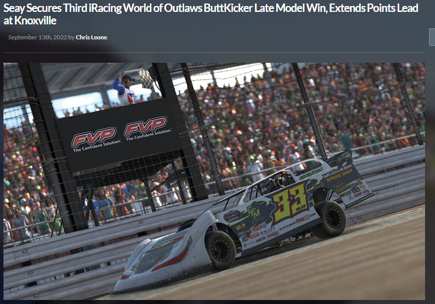 Evan Seay wins his third WoO Late Model Race of the season at Knoxville and extended his points league over Blake Matjoulis