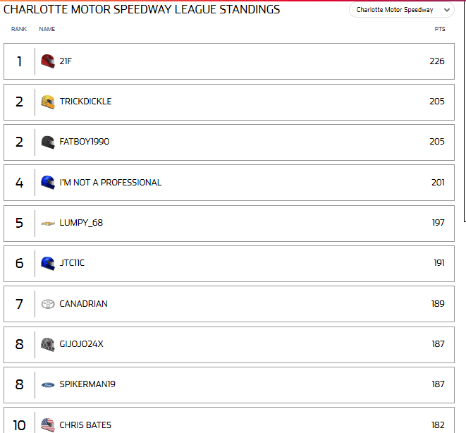- Mike -. P10. The race took four hours and 45 minutes 19 cautions most of them happened in the last hundred laps Was involved in an early Caution, which took out Justin only had a minute and a half damage. At one point through the middle of the race, I cycled to the lead but pretty much ran top five. Was running really good near the end as high as third where the guy forced me to the grass which gave me over the incident limit so I had to do a drive-through penalty. The guy ended up wrecking the leader to win as well. What a loser. I told him don’t be proud of that win.