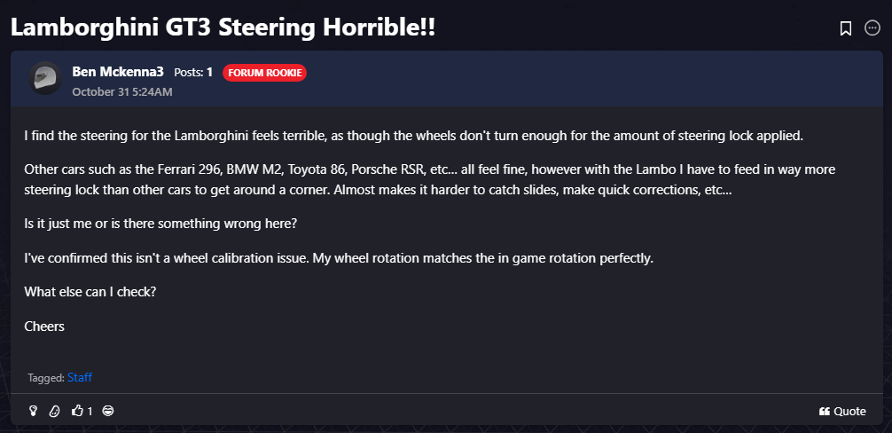 https://forums.iracing.com/discussion/87897/lamborghini-gt3-steering-horrible