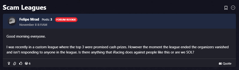 https://forums.iracing.com/discussion/88202/scam-leagues