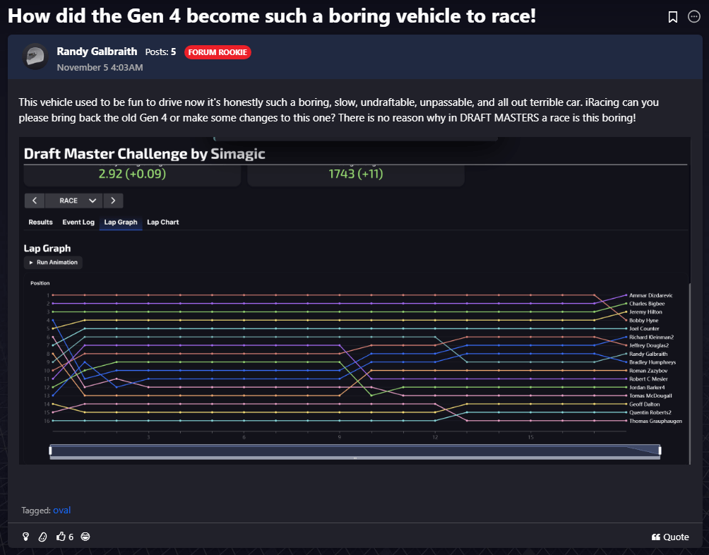 https://forums.iracing.com/discussion/88077/how-did-the-gen-4-become-such-a-boring-vehicle-to-race