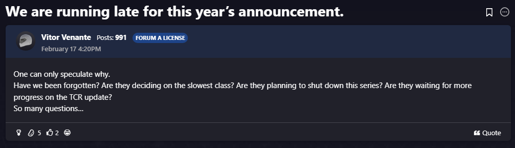 https://forums.iracing.com/discussion/92555/we-are-running-late-for-this-year-s-announcement